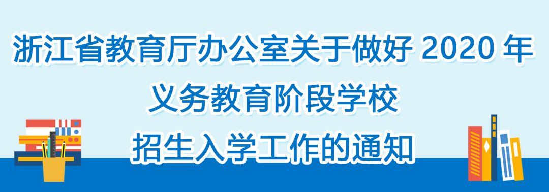 根据《中共中央国务院关于深化教育教学改革全面提高义务教育质量的意见》、全国基础教育工作会议精神及《浙江省中小学生减负工作实施方案》,经省委教育工作领导小组研究同意,近日,浙江省教育厅出台《关于做好2020年义务教育阶段学校招生入学工作的通知》(简称《招生通知》)。