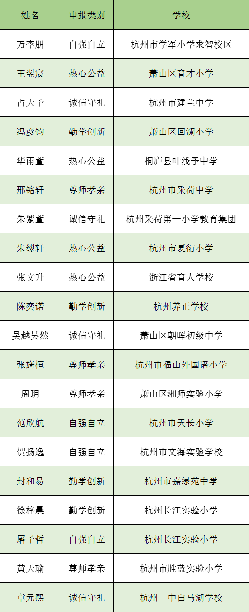 杭州市第十六届“美德少年(新时代好少年)”人选名单今起公示,一起来看看。