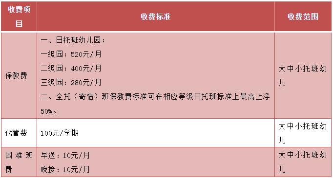 四、日托班的幼儿在园时间为7:30至17:00,共九个半小时。超过在园时间,需早送或晚接的,可在保教费外加收困难班费。