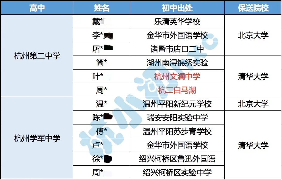 杭二中保送清华北大共计6人