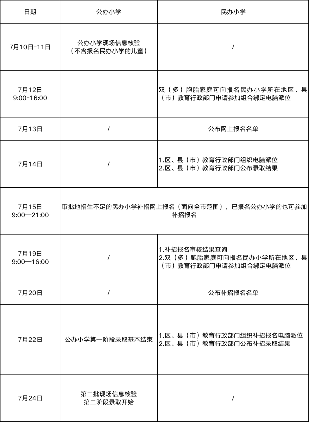 根据《关于做好2021年义务教育阶段学校招生入学工作的通知》(杭教基〔2021〕3号)要求和入学流程,2021年杭州市小学一年级入学现场信息核验工作将于7月10日、11日进行(报名民办小学审核通过但电脑派位未录取的儿童于7月24日进行公办小学招生现场信息核验),请申请公办小学入学的适龄儿童家长,根据区、县(市)教育局(社发局)的相关公告参加现场信息核验。