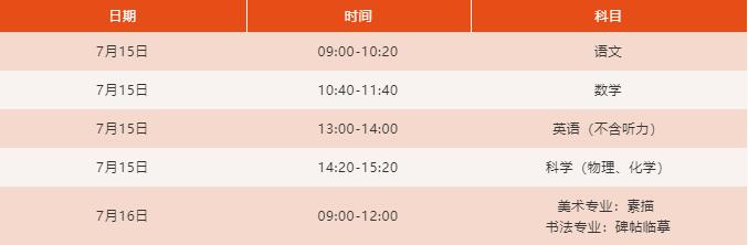 7月15日全天(文化)、7月16日上午(专业)