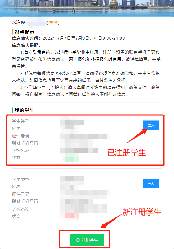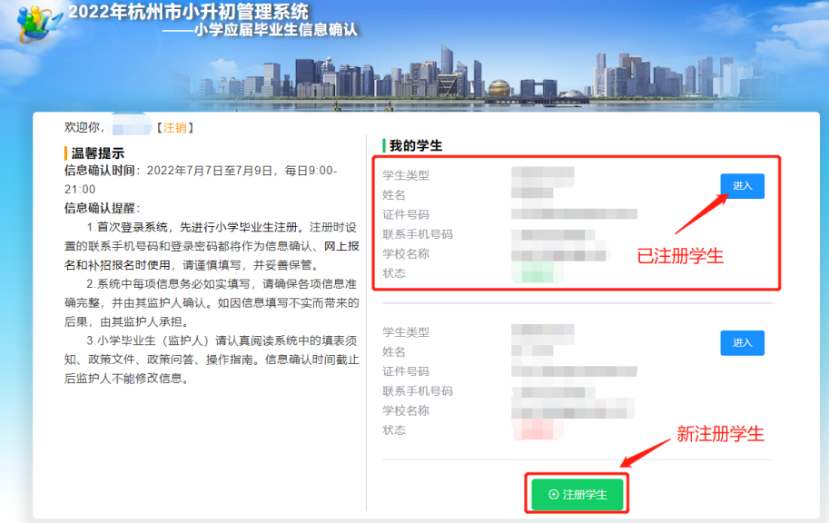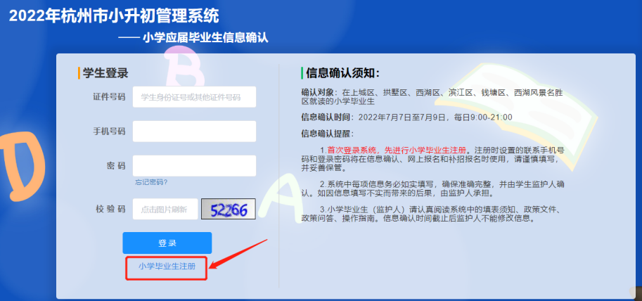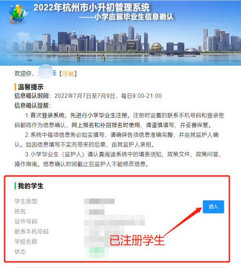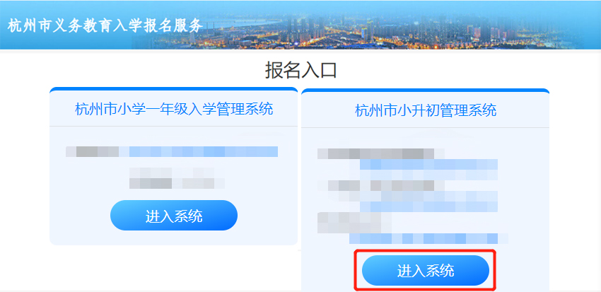 进入杭州市小升初管理系统。