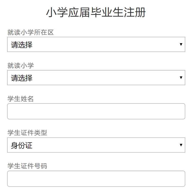 选择就读小学所在区和就读小学,填写学生姓名及证件号码。