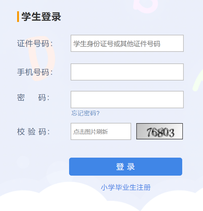 填写学生证件号码、联系手机号码、登录密码后点登录。