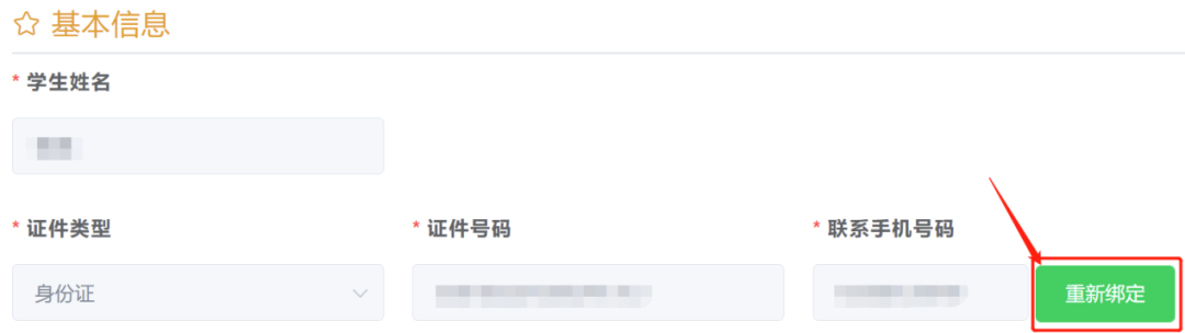 进入系统后,点击【重新绑定】录入新联系手机号码。