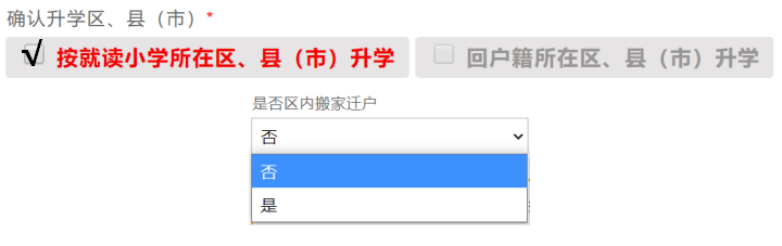 按就读小学所在区、县(市)升学,并确认是否区内搬家迁户。