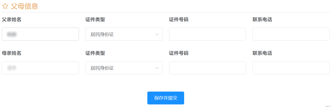 第八步:填写父母信息,保存并提交。