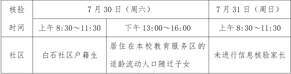 2、报民办小学未录取的适龄儿童现场信息核验安排: