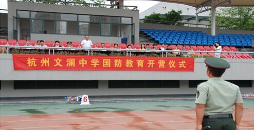 《杭州超限教育中心玛林2015年8月25日讯》2015年秋季开学,相继来临,杭州文澜中学也迎来2015级新生,开始的第一天对于这些孩子,确实进行军训的国防教育活动。