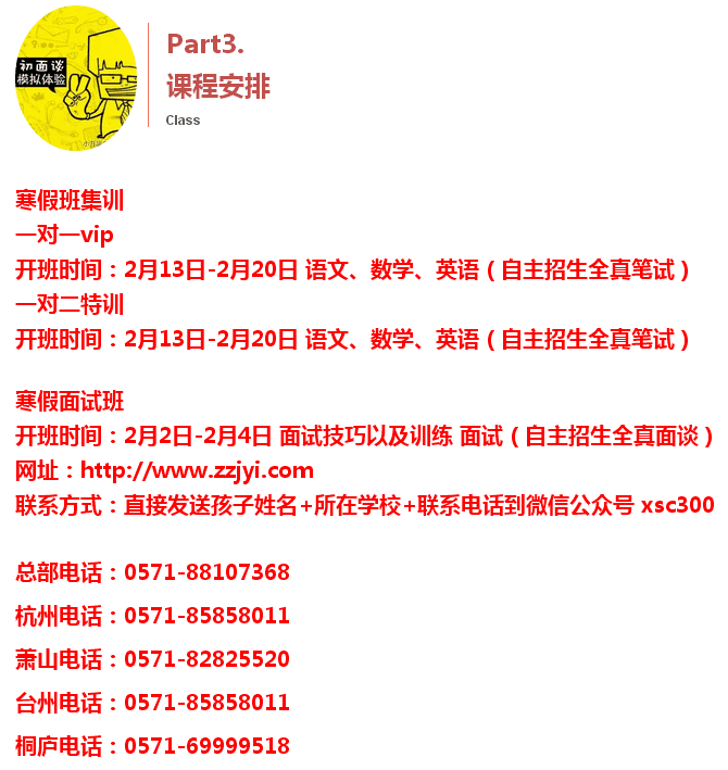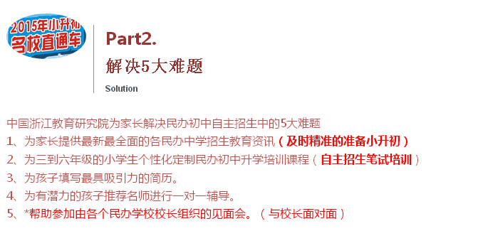 关于杭州小升初入学面谈辅导服务培训、初中升高中渠道推荐服务,详细资讯请与杭州超限教育中心联系:0571-88868827,88912906,88107368,15068855276。