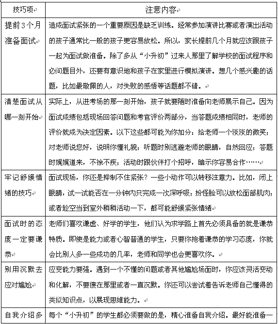 临近深秋,再过几个月,即将迎来杭州小升初一系列工作的序幕,2016年小升初与往年相比,有一些调整。尤其在面试技巧中,需要各位家长予以了解,引起重视。作为小升初面谈辅导的专业机构,随时注意前言杭州小升初讯息,跟大家分享。就2016年应注意的杭州小升初面试技巧分享如下: