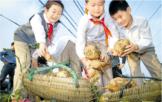 当老师带着同学们从土里挖出一个个土豆的时候,孩子们欣喜若狂,欢呼连连。也别说学生,很多老师也分不清禾苗和韭菜呢。