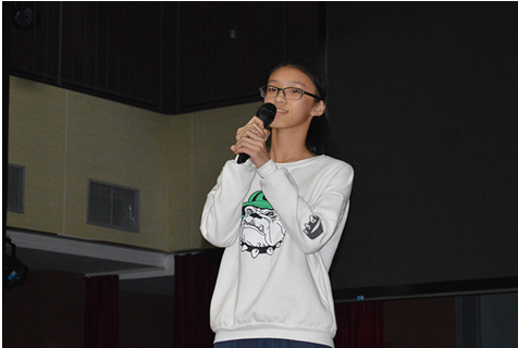 主持人几句串词之后,观众回到了祖国温情的怀抱,韩之异同学的曲目一鸣惊人,在以流行音乐主宰的音乐盛宴里,他用雄浑的男中音唱出了祖国壮丽山河的画面,激起了同学们的爱国热情。在之后在《兔子先生》这一曲中,杨悦辰温柔细腻的嗓音沁人心脾。随即,郭靖怡主导了舞台,在《price tag》跳动的节奏下,全场洋溢着青春的热火,掌声的光芒点亮全场。只是一阵不解风情的下课铃,使得比赛不得不与我们暂时别离。