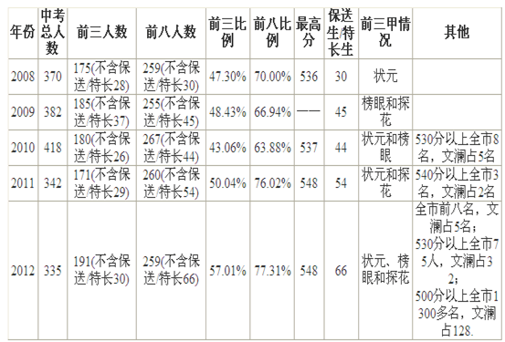 《杭州超限教育中心李林2015年10月29日讯》杭州文澜中学教育成绩一直深受学生家长认可,该学校历年也一方面主抓学校教育环境;另一方面也重点关注学生综合成绩的提升。文澜中学在历年杭州中考中,取得成绩令人羡慕,现截取2008-2012年优秀学子考试成绩统计数据,分享如下: