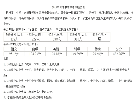 《杭州超限教育中心李林2015年11月04日讯》杭州育才中学历年都以优秀的学生成绩回馈广大家长的信任寄托。不仅 03、04、05、06四年连续中考重高上线率的第一名,成为杭城第一所连续四年整体发挥最为出色的学校。以后继续保持这种教学和成绩优势,现截取育才中学2013年中考成绩分布情况,分享如下: