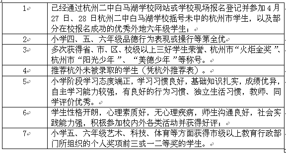 杭州二中白马湖学校自主招生面谈必备条件