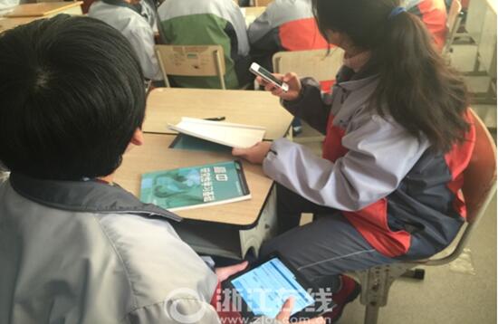 高中校园里能带手机吗?当在场的众多媒体记者疑惑时,申屠永庆校长说,手机是学生的“第二课堂”。为什么能这么说呢?原来,校园里提供WIFI,还给学生提供了“学习元”APP。就像前来采风的记者们还没走进校门,就已经收到了学校细心准备的小纸条——写有校园WIFI和密码的纸条。“每周,都有研究型学习课程,课堂上就是使用手机APP来教学和互动的。”