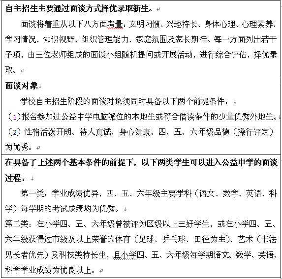 凡不符合上述条件的学生均不在公益中学自主招生面谈对象范围。
