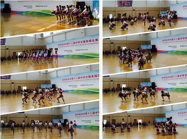 《杭州超限教育中心李林2016年04月19日讯》3月25日,杭州市第12届中学生健美操比赛在杭州第十四中学(凤起校区)举行,我校炫舞健美操队的16名同学代表学校参加了初中组啦啦操的比赛。