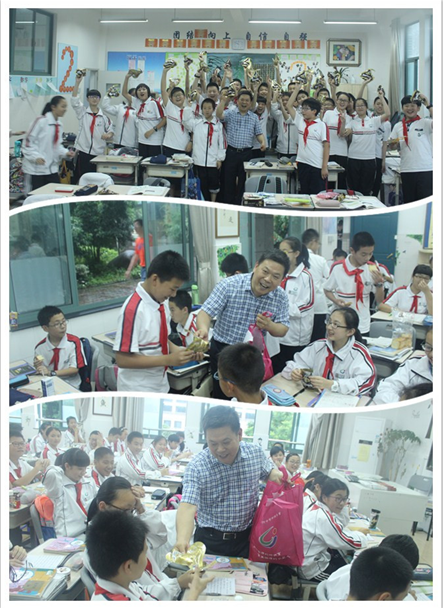 上午的大课间,我们亲爱的阿潘校长来到每个班级派发“六一”儿童节礼物,潘校长亲手将一份份小礼物送到每一个孩子的手中,祝福同学们儿童节快乐,同时也希望每一位老师能保持一颗童心,快乐工作,幸福生活!