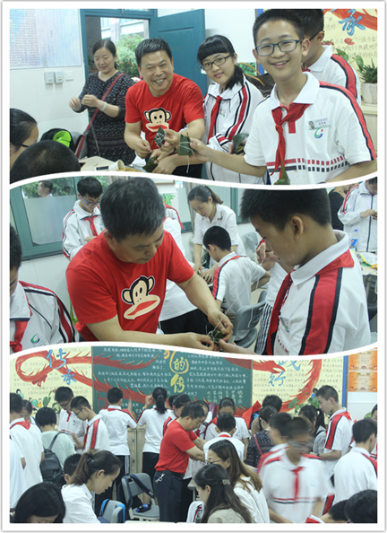 下午的课外活动时间,我们初一年级的每个班都开展了丰富多彩的庆祝活动,有欢乐游戏联欢会、香甜蛋糕零食大分享、包粽子、做香囊……我们的阿潘校长也和孩子老师、家长们一起庆祝欢乐的六一。
