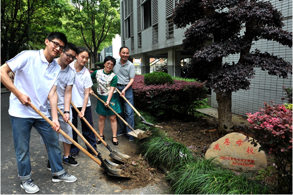 为答谢2016届学子对母校的拳拳爱意,学校于6月10日上午在行政楼前举行了植树仪式。陈萍校长、冯定应副校长、校办主任朱高雄、教学处副主任黄晓博等学校领导, 2016届年级组长徐小芳,还有毕业生代表和家长代表们共同见证这一时刻。