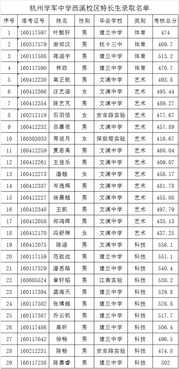 《杭州超限教育中心李林2016年06月30日讯》今日,学军中学公布了2016年艺术生录取名单,录取特长生人数37人,详细名单如下。