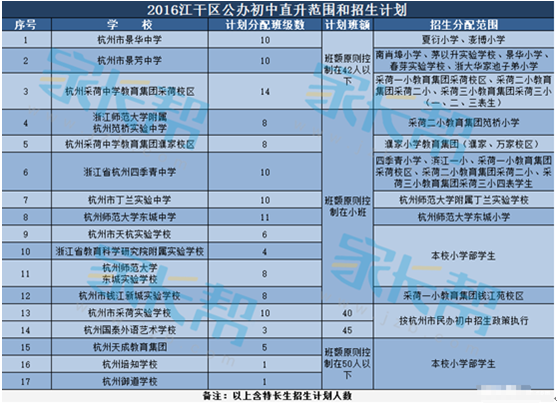 《杭州超限教育中心李林2016年07月26日讯》杭州小升初,相信除了民办初中的招生火爆之外,公办中学的招生也是一样火爆的。对于很多考虑就读公办中学的家长和孩子来说,公办中学的招生计划也是特别需要了解的。下图是杭州市江干区公办中学最新的招生计划表,家长可根据自身情况合理准备。