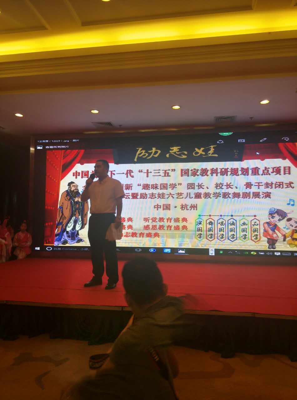 《中国浙江教育研究院罗林琳2016年8月12日讯》“中国的希望在明天,明天的希望少年,帮助少年成长我有责任!”2016年8月12日上午,中国浙江教育研究院院长魏任斌先生以青少年教育研究领域专家的身份参加了在杭州萧山宝盛宾馆举办的“全国幼教创新‘趣味国学'教学论坛。