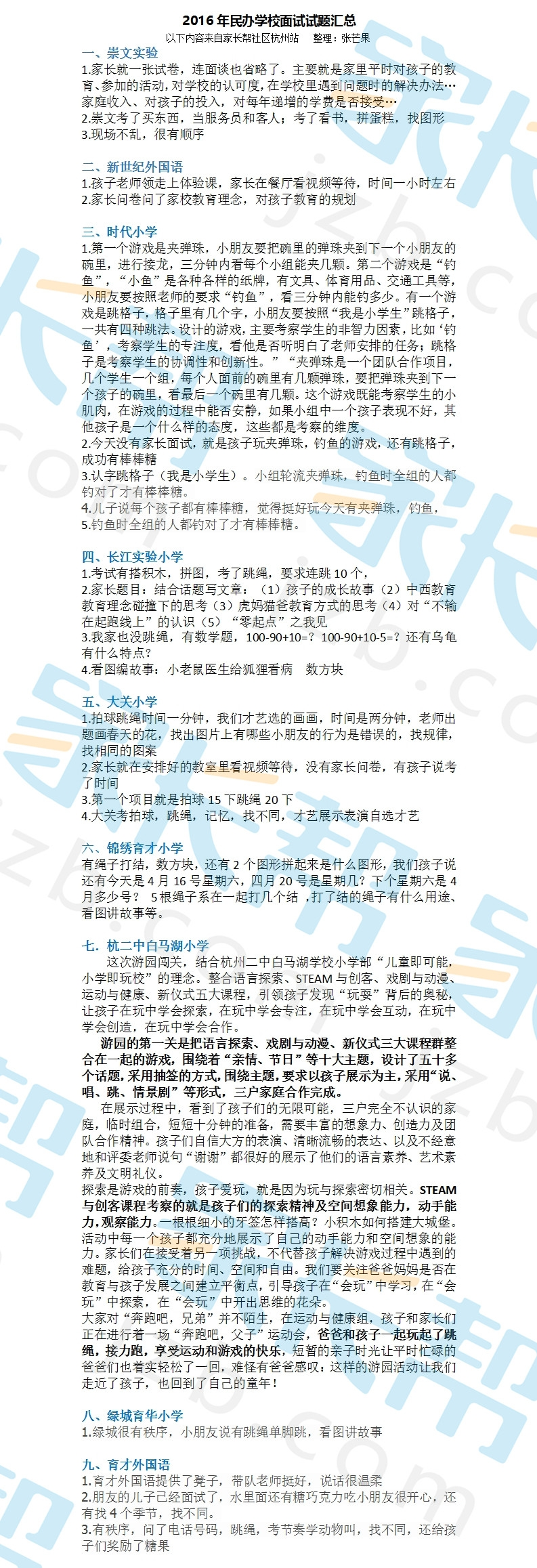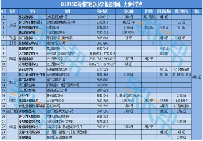 做了一张2016年杭州市区民办小学报名时间、校长讲座、体验课等大事件表,供17年入学的爸爸妈妈们参考。