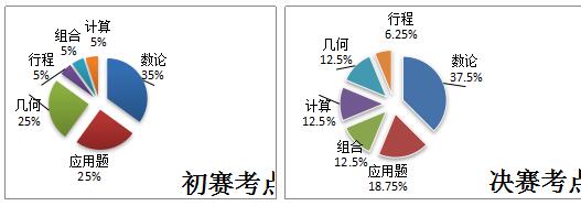 我们可以看下2016年希望杯初赛和决赛考察知识点的分布饼图: