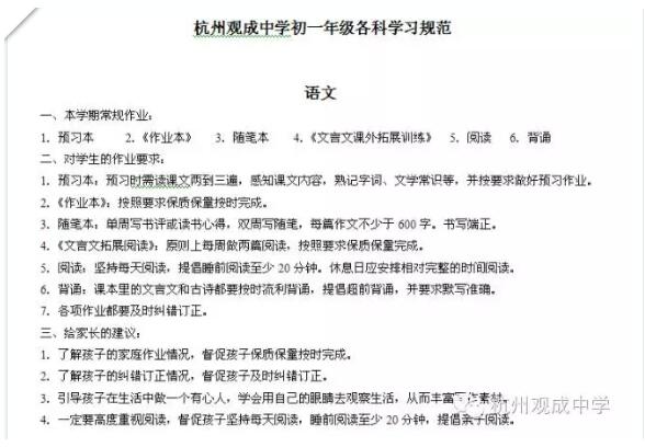 《杭州超限教育中心李林2016年11月25日讯》近日杭州观成中学发布了学校对于初一学生的学习规范,家长们可以从中看出观成中学的一些教育理念和管理方法,对于小升初择校也有很大帮助。