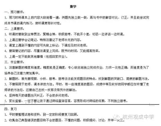 可以看出各个要点中,不仅仅是对学生的要求,很多部分是对家长的要求,家长在科目中如何帮助孩子更好的学习,是这次学习规范中的亮点内容。
