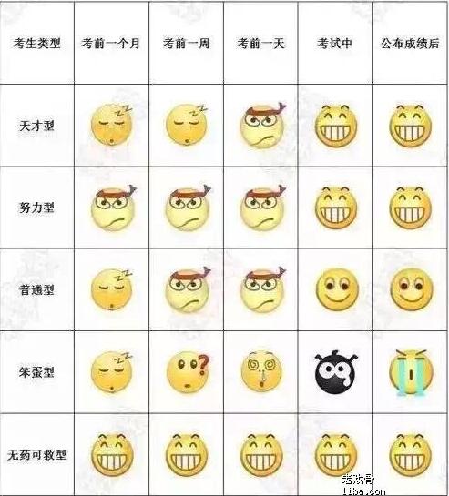 杭城部分学校今日拉开了期末考的序幕,你看孩子的状态是下图中的哪一种?