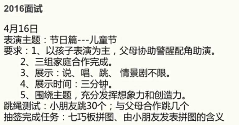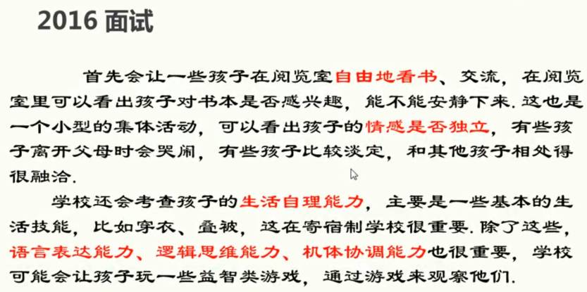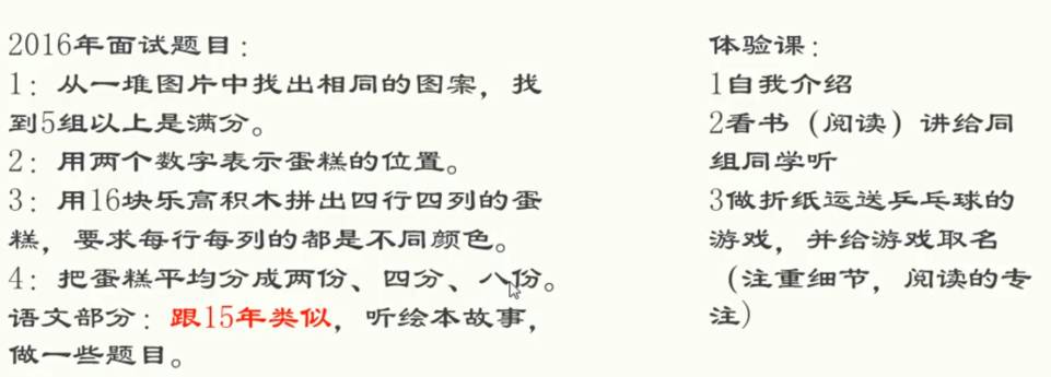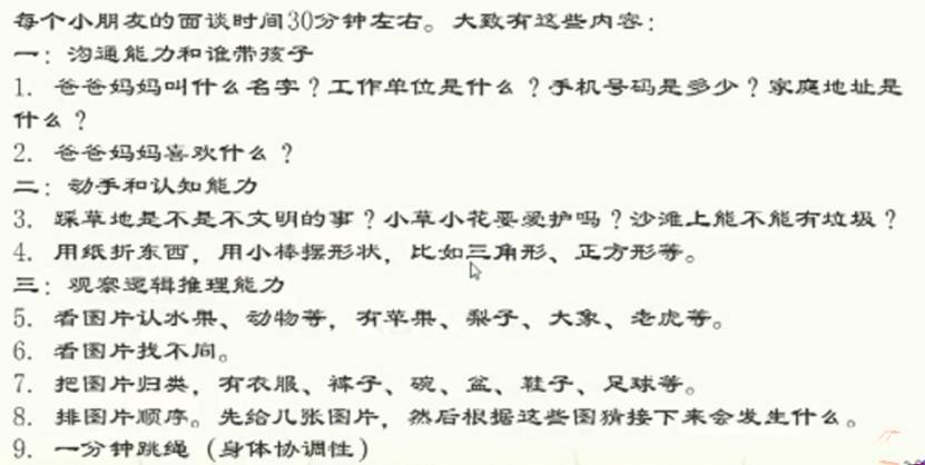 面试考查点以行为类偏多,会观察家长以及孩子的言行举止