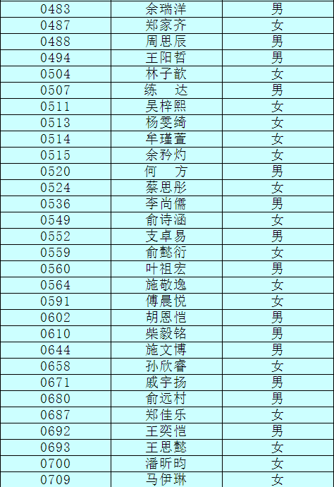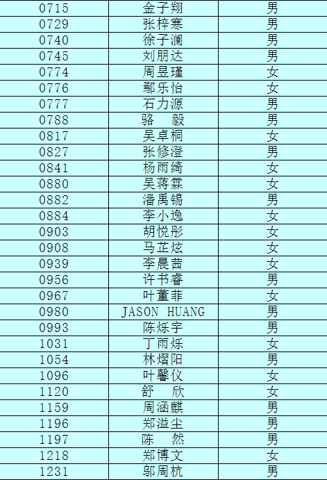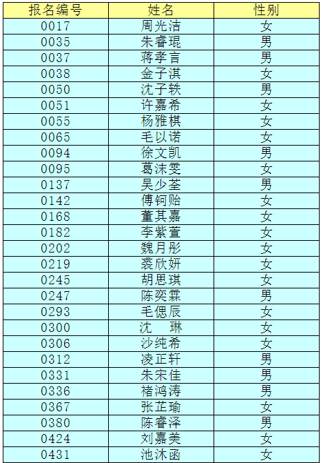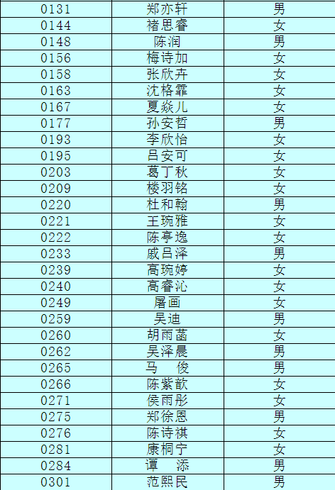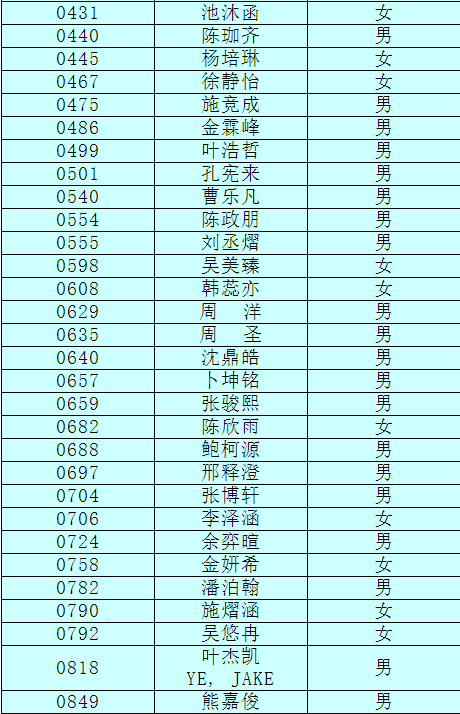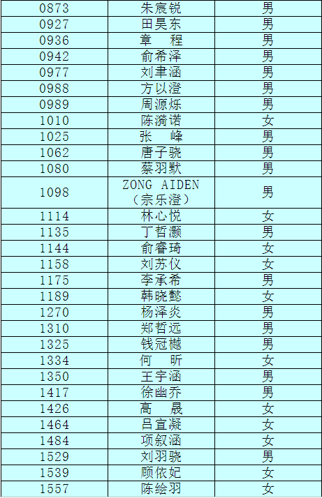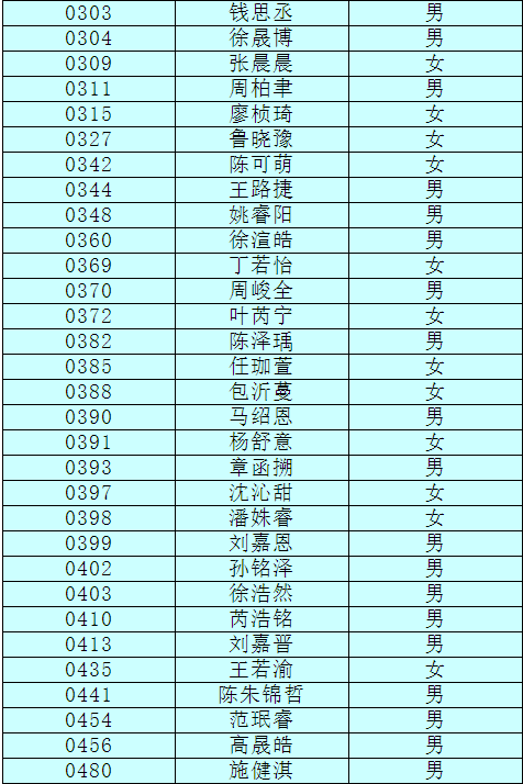 2.以下新生请于4月17日下午15:00至16:30签订《就读杭州市崇文世纪城实验学校承诺书》并缴费,逾期视为放弃。