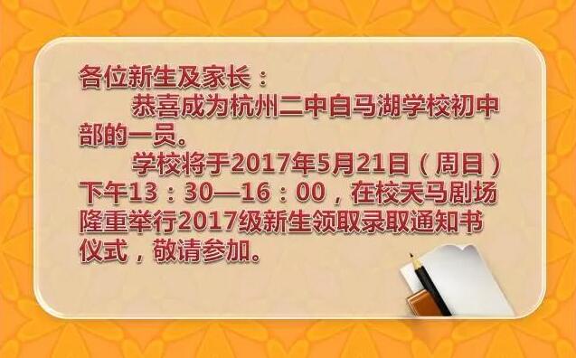 2017年杭州二中白马湖新生录取通知书领取