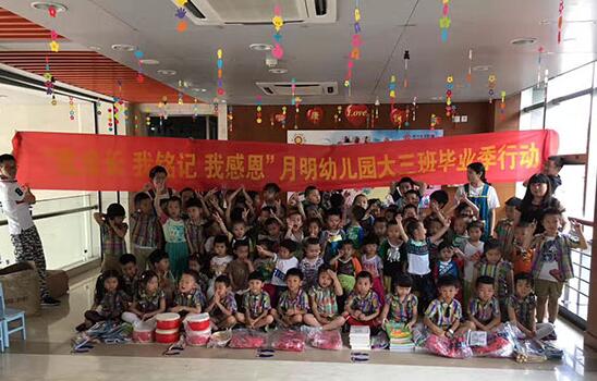 5月21日上午,月明幼儿园大三班的老师、家长和小朋友一起走进了一个特殊的学校——杭州市余杭区阳光语训中心,在这里跟这些特殊的天使们一起提前过一个特殊的六一儿童节,并给他们带去了大三班小朋友通过义卖筹得的各种爱心物资——教具、文具、衣物、图书等价值4300元。