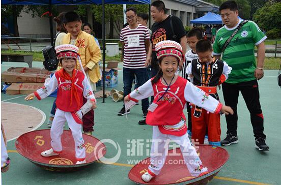 “脚稳住,用腰部的力量,用腰!腰!腰!”杭州市滨江区滨虹学校的校园里传来阵阵欢声笑语,同学们正玩畲族游戏“下摇锅”玩得不亦乐乎。