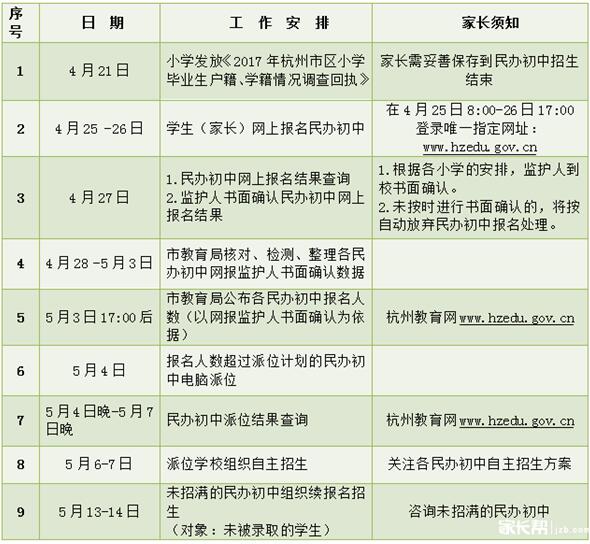 2017民办初中招生流程: