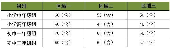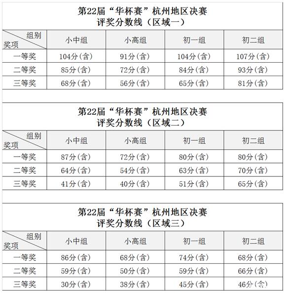 按照第22届“华杯赛”杭州地区组织工作方案中初赛晋级规则和公平、公正、公开的赛事原则,初赛成绩优秀者按照各参赛区域各组别人数30%比例晋级决赛,具体晋级分数线如下: