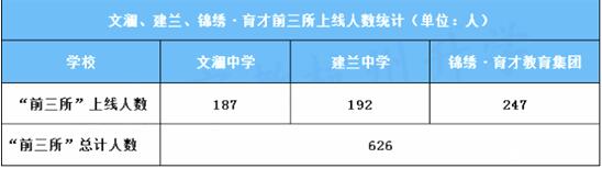 再看文澜中学、建兰中学、锦绣·育才教育集团公布的中考喜讯,前三所人数上线总计有626人,占比78.15%▼