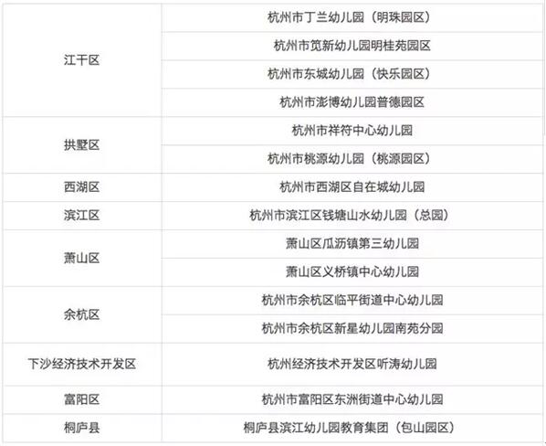 根据《浙江省幼儿园等级评定实施办法》和《浙江省幼儿园等级评定标准》,在各幼儿园申报、各地教育局审核基础上,经现场评估,公示无异议后,近日,浙江省人民政府教育督导委员会办公室认定杭州市丁兰幼儿园(明珠园区)等57所幼儿园为省一级幼儿园。