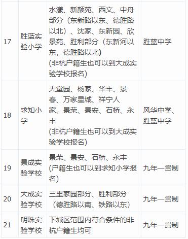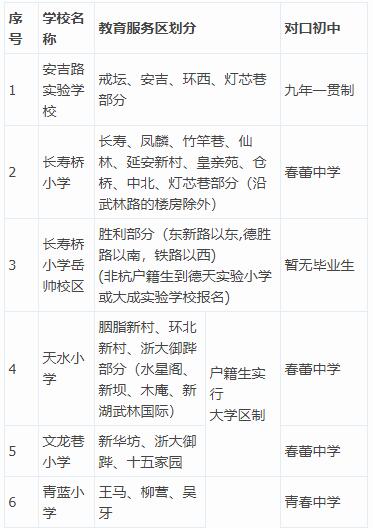 2019-2020下城区公办小学学区划分、对口初中一览表