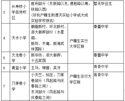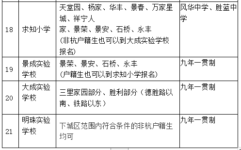 2019-2020下城区公办小学学区划分、对口初中一览表